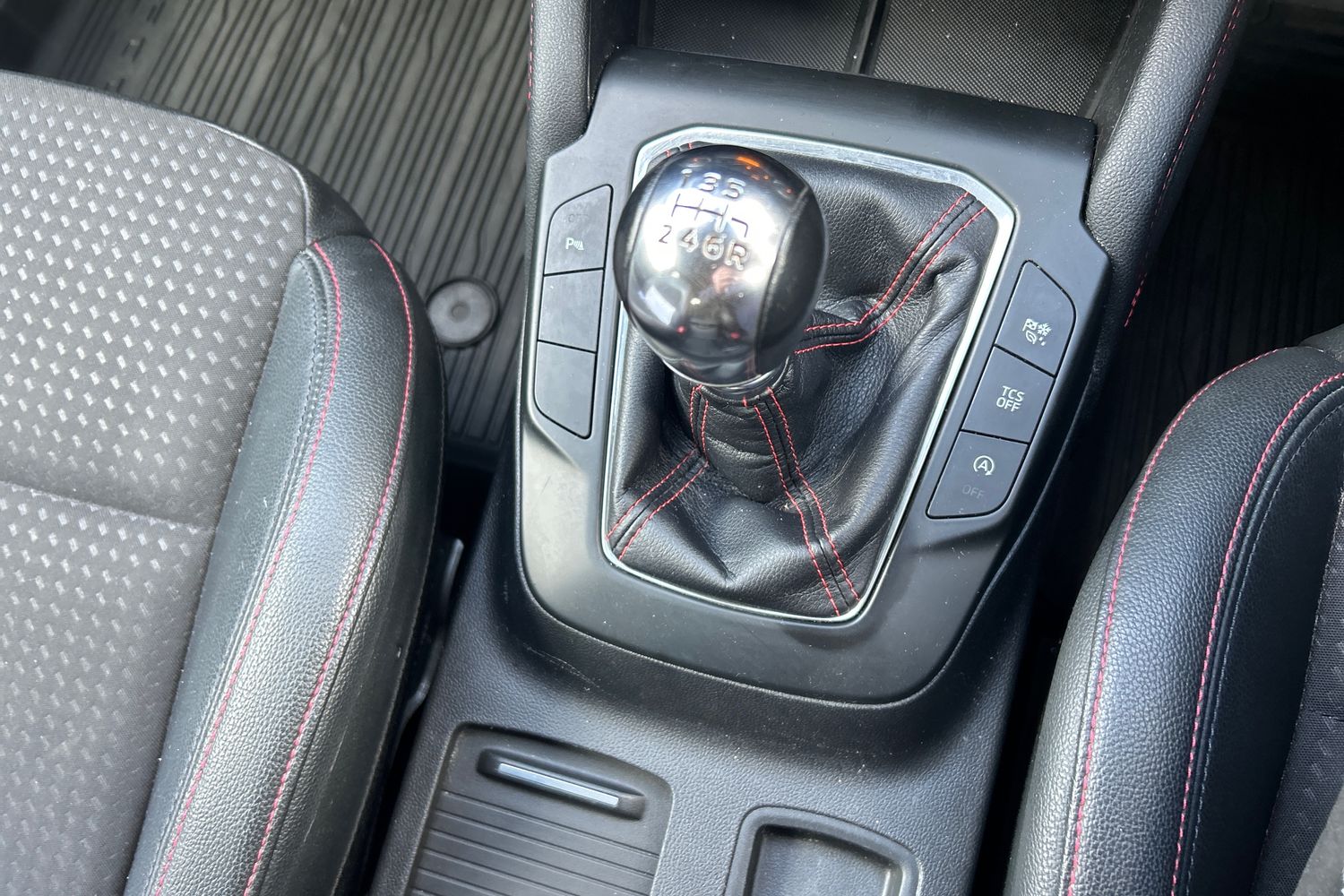 • Flat Bottomed Steering Wheel with Red Stitching