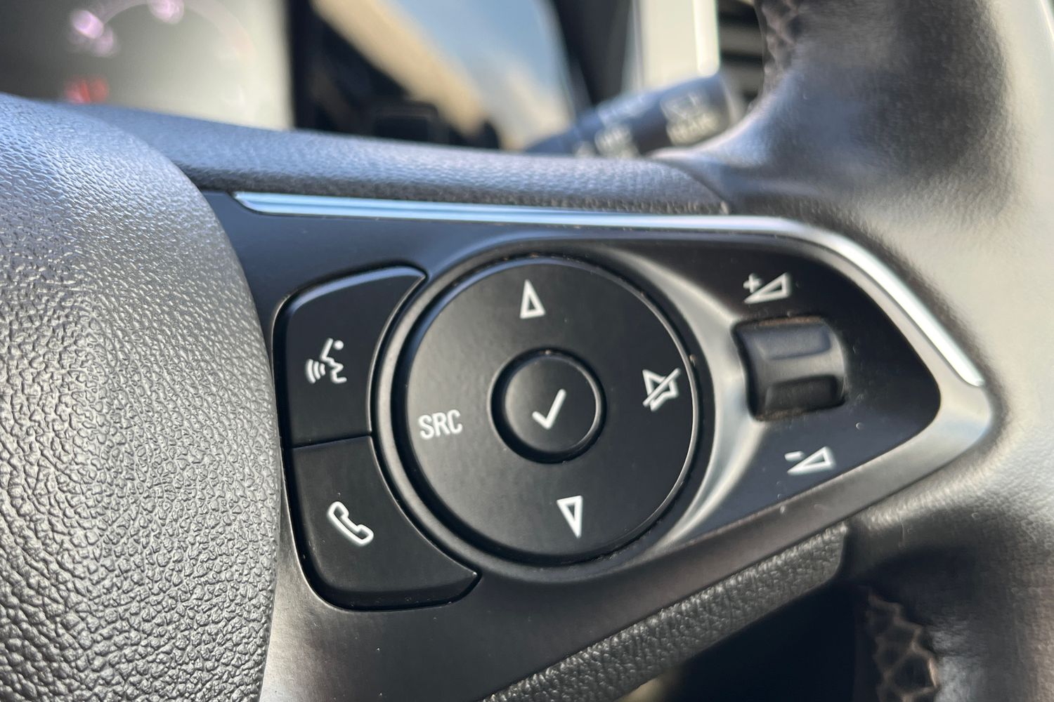 • Steering Wheel - Three-spoke Design - Leather Covered - Satin Chrome-effect Bezel