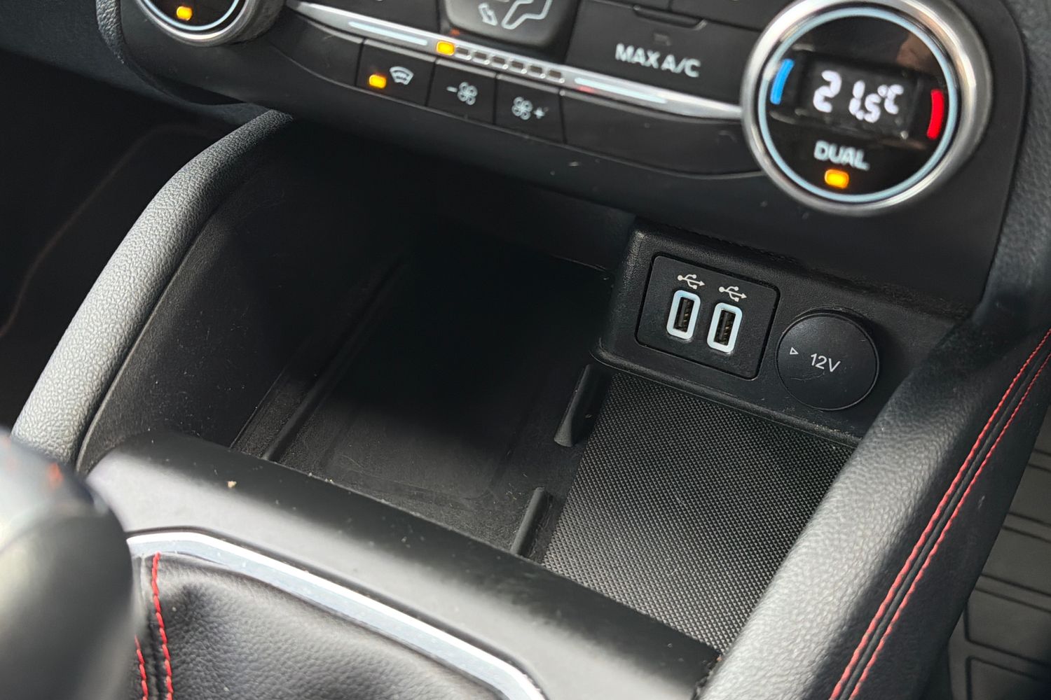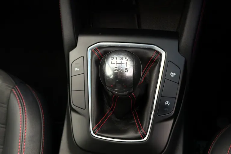 • Gear Shift - Unique Leather Trimmed Knob With Satin Aluminium Insert And Red Gaiter Stitching