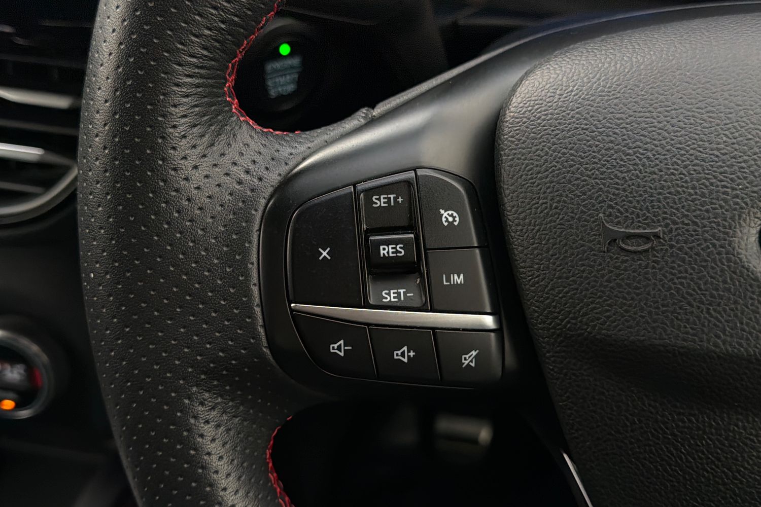 • Flat Bottom Steering Wheel In Sensico With Red Stitching