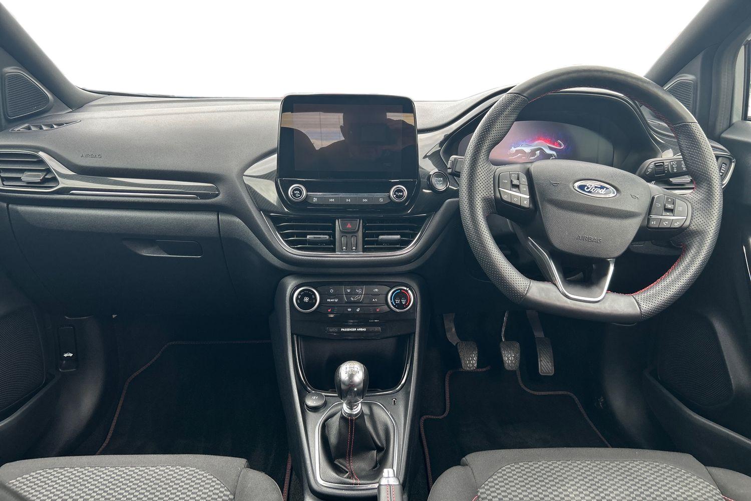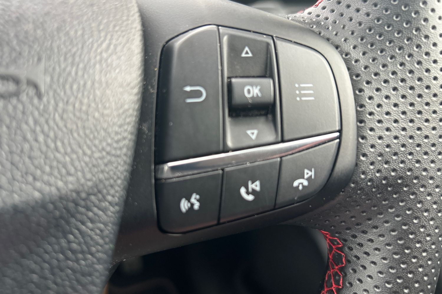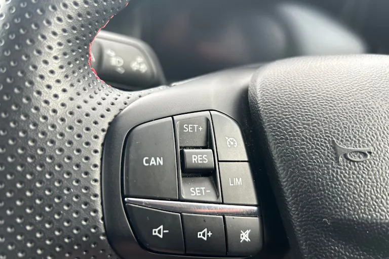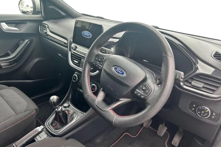• ST-Line Flat-Bottomed Leather Steering Wheel with Unique Red Stitching