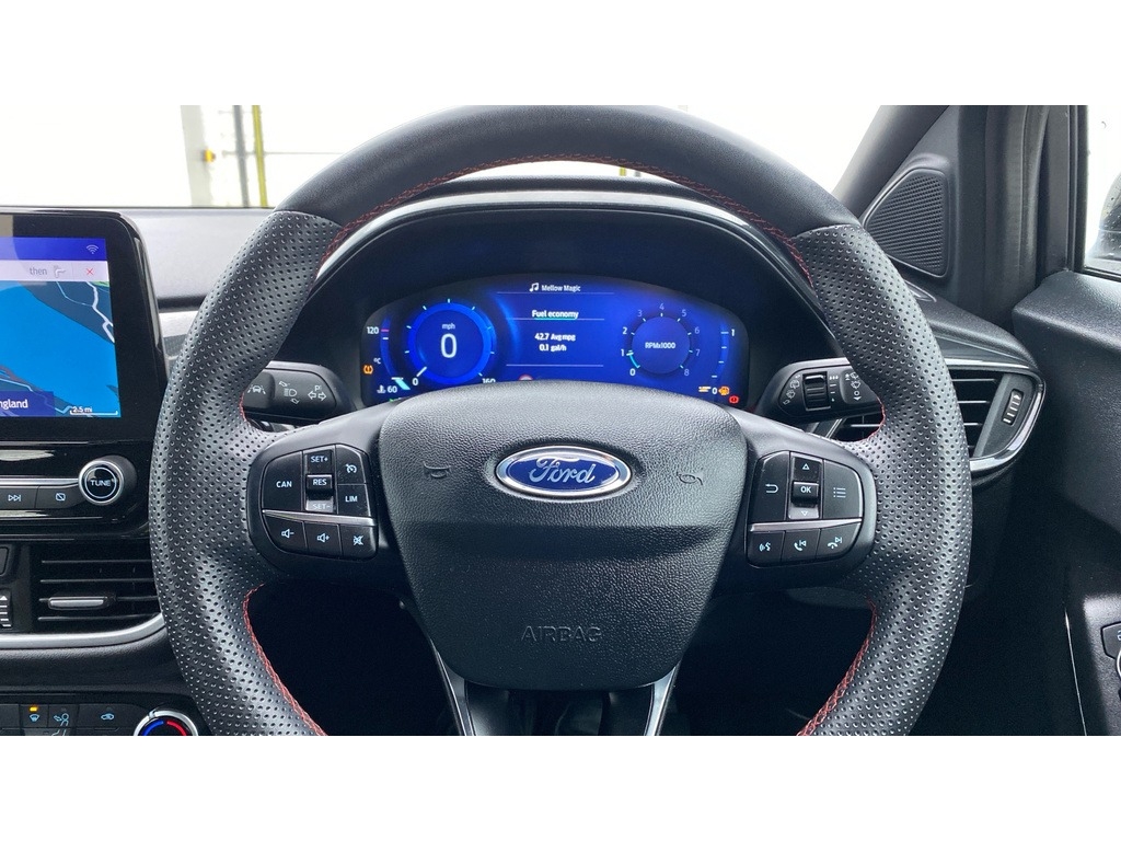 • ST-Line Flat-Bottomed Leather Steering Wheel with Unique Red Stitching