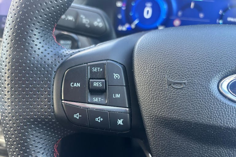 • ST-Line Flat-Bottomed Leather Steering Wheel with Unique Red Stitching