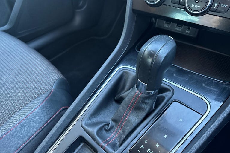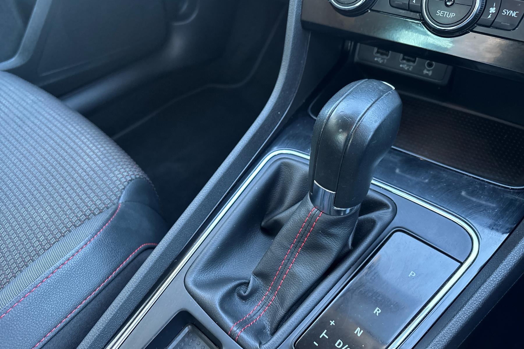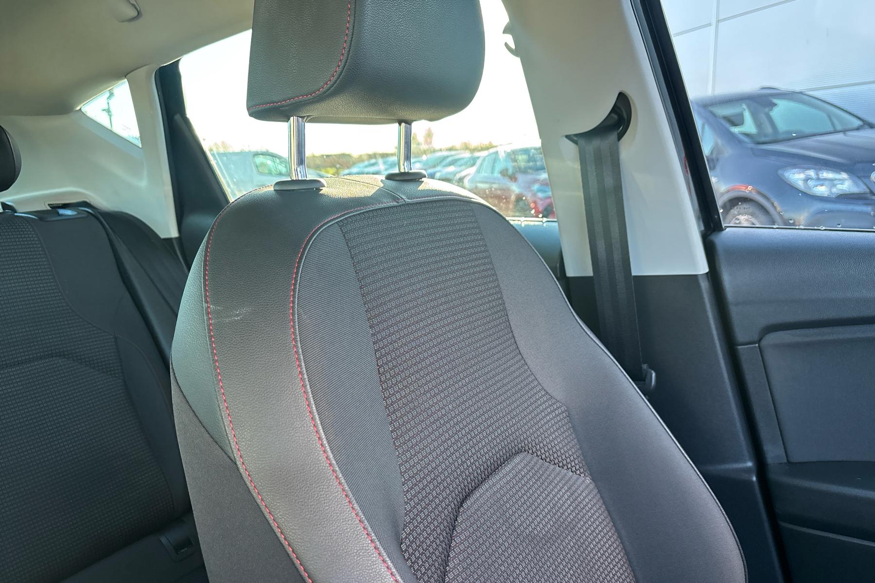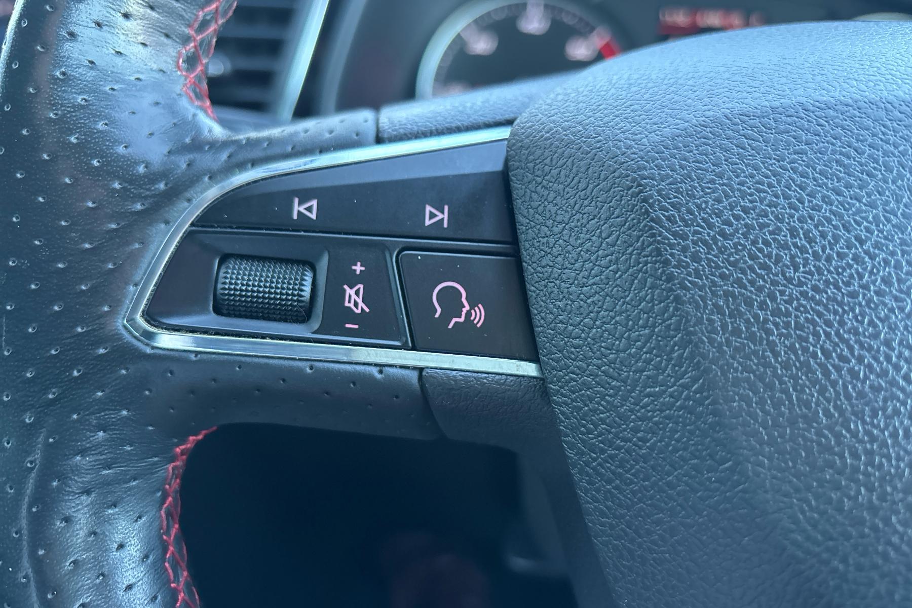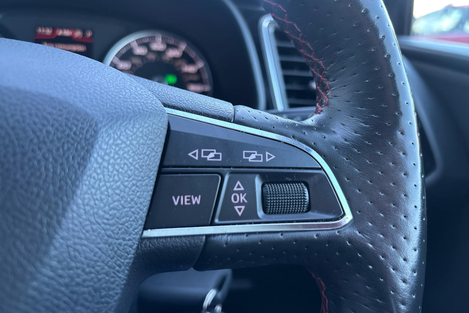 • Steering Wheel - Flat-Bottomed Perforated Leather with Red Stitching and FR Logo