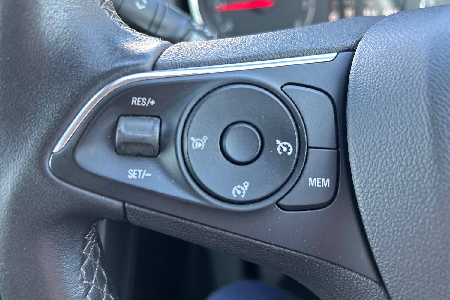 • Steering Wheel - Three-spoke Design - Leather Covered - Satin Chrome-effect Bezel
